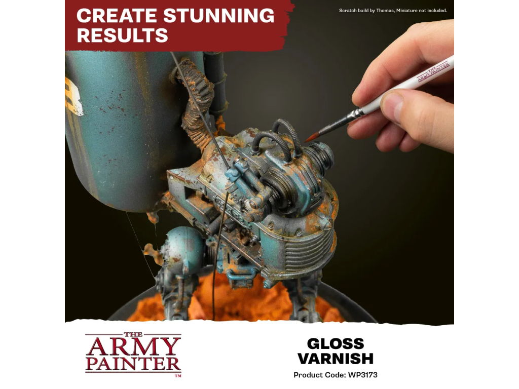 Army Painter Fanatic Effects - Gloss Varnish je čirý lesklý lak určený k ochraně modelů, figurek a miniatur po dokončení barvení. Vytváří elegantní lesklý povrch, který zvýrazní barvy, detaily i kontrasty a zároveň dodá modelům profesionální vzhled. Lak chrání povrch před prachem, drobným poškrábáním a běžnými nečistotami při manipulaci nebo vystavení. Je ideální pro sběratelské kusy, herní armády i výstavní modely. Díky kvalitní receptuře se snadno nanáší a vytváří rovnoměrný ochranný film. Pokud chcete své výtvory nejen zkrášlit, ale také ochránit, jde o skvělou volbu.