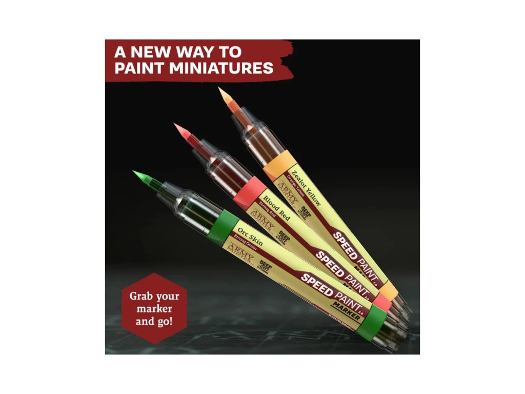 Speedpaint Marker Introductory Set je vhodný pro nové hobby nadšence, kteří chtějí rychlé a snadné řešení bez složitých technik. Zároveň jej ocení i zkušení modeláři jako praktický nástroj pro rychlé úpravy a zvýraznění detailů. Skvěle se hodí pro wargamingové armády, RPG miniatury i menší projekty. Díky jednoduchosti použití můžeš malovat kdykoli a kdekoli bez zdlouhavého úklidu. Sada představuje cenově dostupný a efektivní způsob, jak vyzkoušet technologii Speedpaint markerů. Je to ideální první krok k rychlejšímu a pohodlnějšímu barvení miniatur.