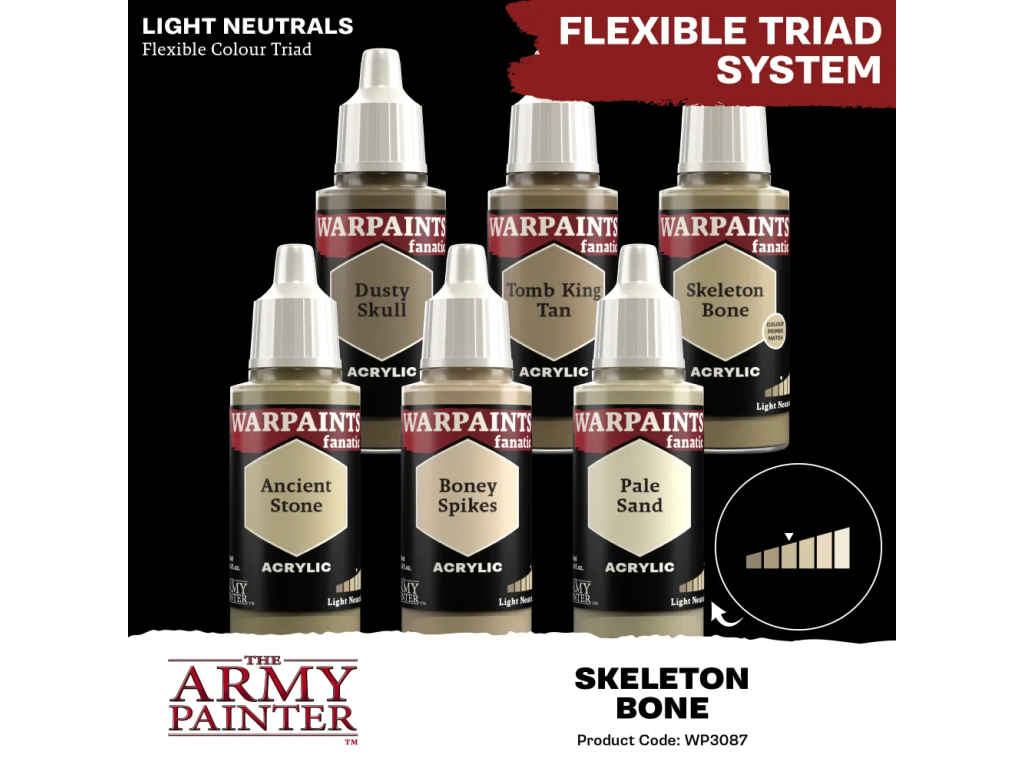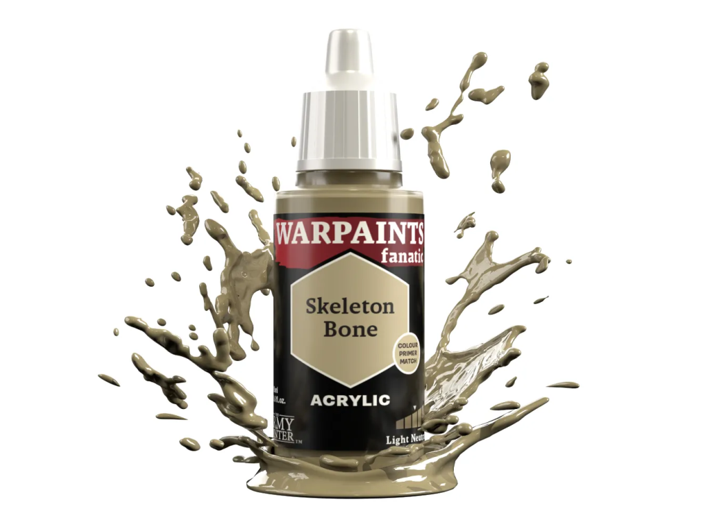 Army Painter Warpaints Fanatic - Skeleton Bone je akrylová barva určená pro miniatury všech druhů a nabízí univerzální světlý kostěný odstín s širokým využitím. Skvěle se hodí pro kostry, lebky, parohy, zuby, staré pergameny, kosti i opotřebované materiály. Tento tón je oblíbený také jako základ pro světlé látky, kůži nebo přírodní detaily na fantasy a historických modelech. Díky neutrálnímu charakteru jej snadno zkombinujete s dalšími barvami a efekty. Na figurkách vytváří realistický a přirozený vzhled bez přehnané výraznosti. Pokud hledáte praktickou barvu, kterou využijete v mnoha projektech, Skeleton Bone je skvělá volba.