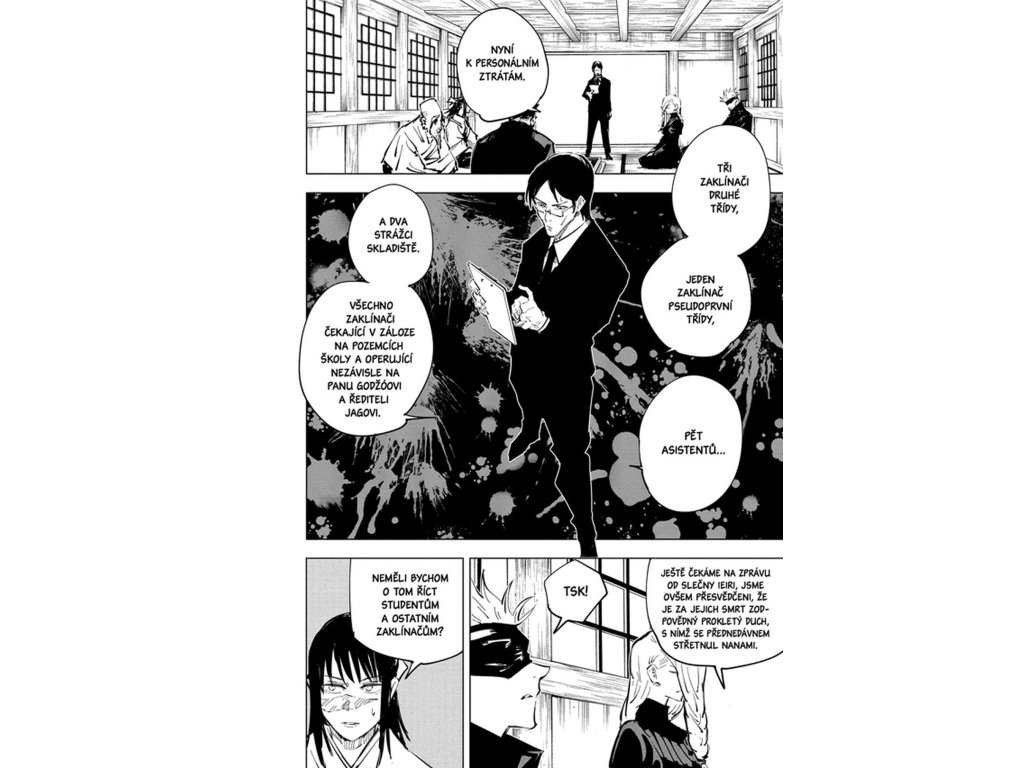Aniž by Itadori tušil, ztracené artefakty otevírají cestu k událostem, které by mohly vést až k jejich inkarnaci. Devět vzezření smrti není jen obyčejným označením – každý z těchto artefaktů nese děsivý otisk moci, jež může proměnit svět v bitevní pole kleteb a utrpení. Tato skrytá hrozba se zatím drží v pozadí, jako temný stín připravený udeřit v nejméně očekávaný okamžik. Itadori a jeho spolužáci se proto vydávají dál, netušíce, že kroky, které činí, jsou součástí širší hry. V zákulisí totiž už někdo tahá za nitky a připravuje plán, jehož výsledkem může být jen chaos a zkáza. Napětí roste s každým okamžikem a budoucnost zůstává nejistá.