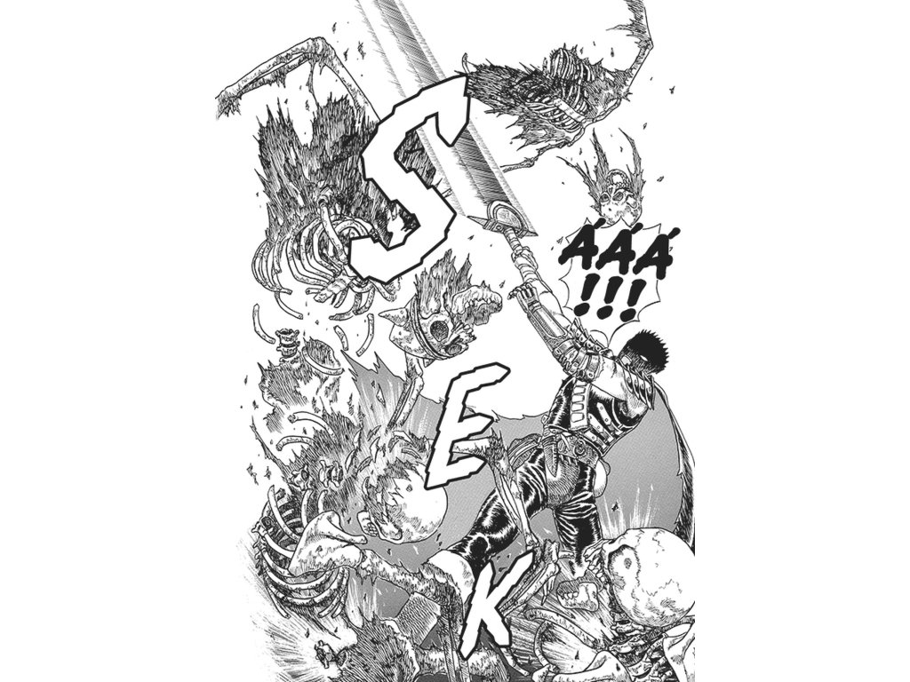 Guts, známý jako Černý šermíř, je mužem, který nese těžké břemeno minulosti a kráčí cestou lemovanou smrtí, bolestí a pomstou. Každý jeho krok znamená utrpení – pro nepřátele, kteří se mu postaví, i pro ty nešťastníky, kteří se ocitnou v jeho blízkosti. S obřím mečem v ruce a jizvami na těle i duši se Guts žene kupředu, poháněn jedinou touhou: najít a zničit ty, kdo z něj udělali monstra, kterým se stal. V jeho světě neexistuje slitování ani klid, jen nekonečný boj proti démonům, lidem i vlastnímu šílenství.