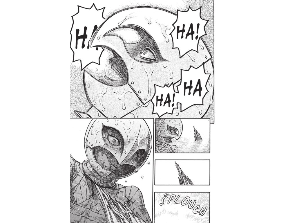 Záchrana Griffitha se sice podařila, ale místo hrdého vůdce Jestřábů zůstala jen zlomená, zničená schránka. Jeho tělo je zmrzačené, hlas umlkl a pohled prázdný – muž, který kdysi inspiroval tisíce, se stal pouhou ozvěnou své někdejší velikosti. Miura zde mistrně vykresluje kontrast mezi minulou slávou a současným zoufalstvím, které doléhá na všechny kolem. Jestřábi, kdysi symbol odvahy a jednoty, se ocitají v troskách a jejich sen o svobodě se rozplývá jako dým. Griffith, který býval světlem jejich cesty, se proměnil v připomínku krutosti osudu. Každá stránka dýchá beznadějí a bolestí, která drtí nejen postavy, ale i čtenáře.