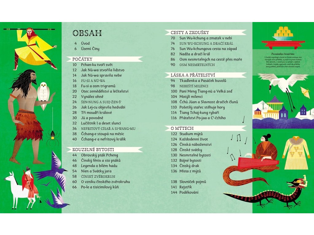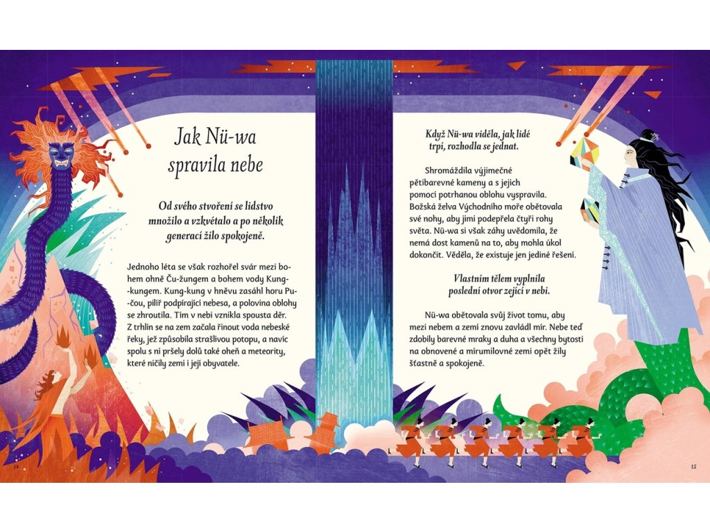 Sbírka zahrnuje široký průřez čínskou mytologií, od příběhů o stvoření světa až po nástup prvních císařů. Čtenáři se seznámí nejen s velkolepými legendami, ale také s řadou zajímavých faktů o kultuře, náboženství a každodenním životě dávné Číny. Prastaré příběhy představují důležitou součást identity této země a přibližují hodnoty, které byly pro tehdejší společnost klíčové. Kniha ukazuje, že mytologie není jen o bozích a hrdinech, ale také o tom, jak lidé vnímali svět kolem sebe. Díky tomu získávají čtenáři hlubší porozumění pro tradice a historii, které dodnes ovlivňují čínskou kulturu. Každý příběh je tak zároveň dobrodružstvím i lekcí z dějin.