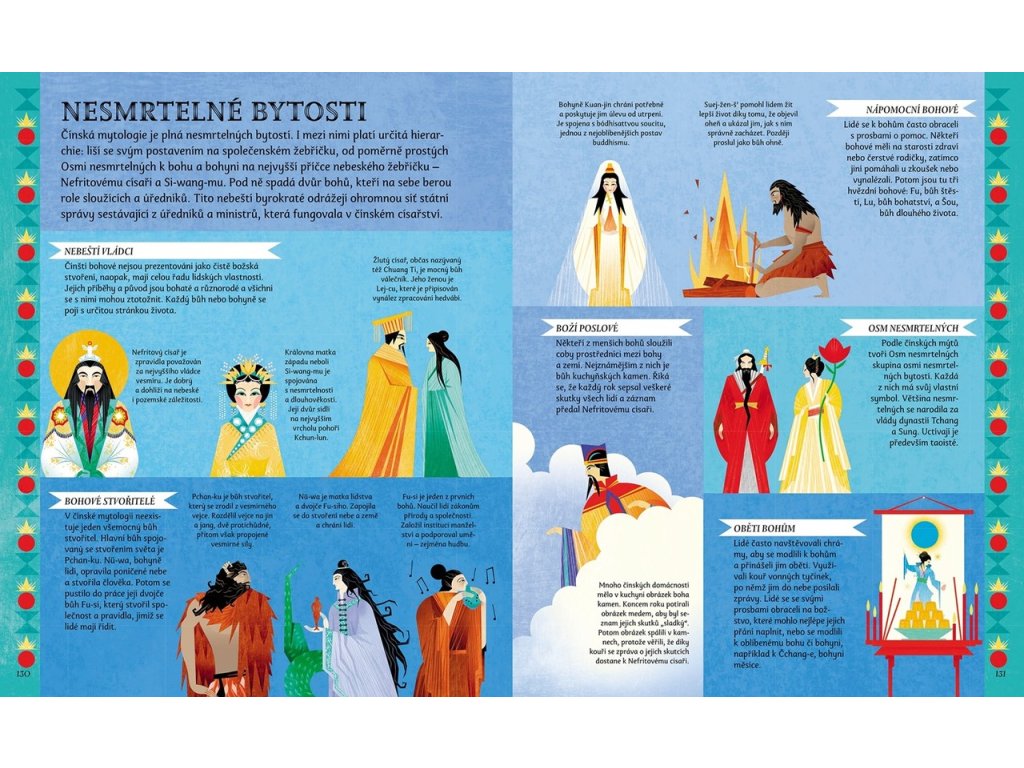 Kniha není jen souborem starých mýtů, ale i pokladnicí zajímavostí, které obohacují čtenářský zážitek. Dozvíte se například, proč je během čínského nového roku důležité dělat co největší rámus, jak lučištník I sestřelil z nebe devět sluncí nebo jak vlastně vznikl čínský zvěrokruh. Příběhy doplňují ilustrace a vysvětlení, která dávají legendám nový rozměr a přibližují je moderním čtenářům. Celá kniha je koncipovaná tak, aby byla atraktivní pro děti i dospělé, kteří chtějí poznat kouzlo čínské mytologie. Je to výzva k dobrodružství, při kterém se svezete na hřbetu čínského draka, přejdete po stračím mostě Mléčnou dráhu a navštívíte nefritového králíka na měsíci. Takové čtení se stává nezapomenutelným zážitkem.