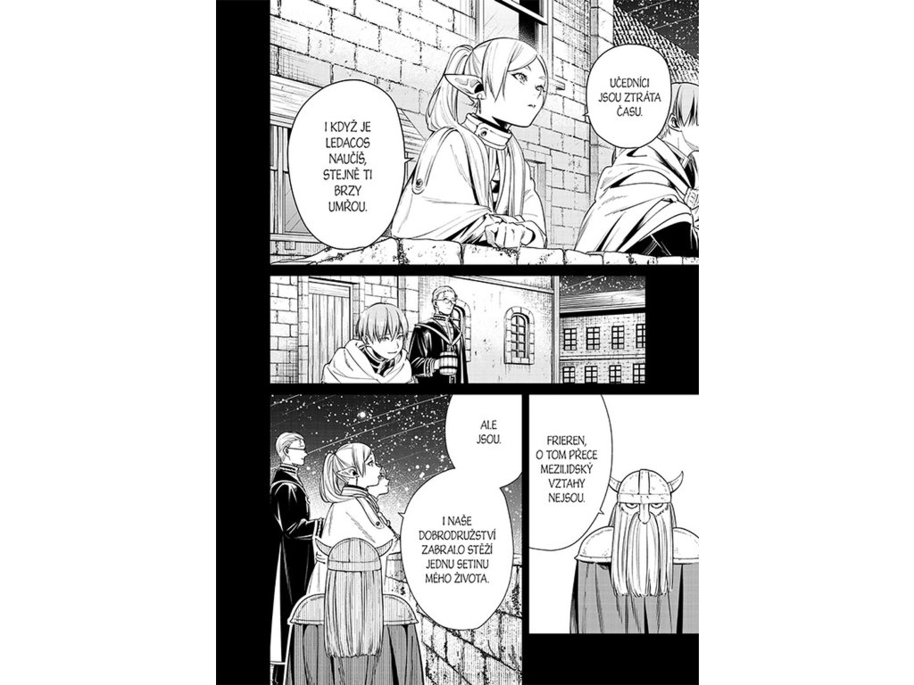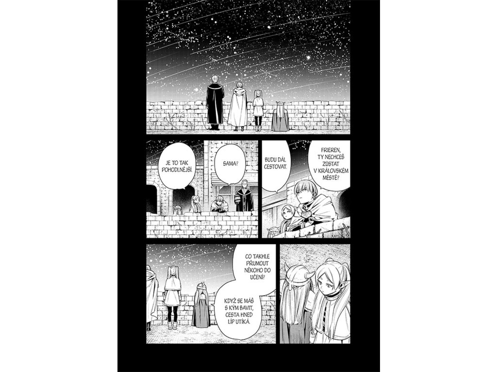 Po letech bezcílného bloudění se elfí mágyně Frieren poprvé vydává na pouť, která má jasný směr. Jejím cílem je Ende, mystická krajina na dalekém severu, opředená legendami o duších padlých hrdinů. Právě tam kdysi skončila slavná výprava, během níž Frieren se svou družinou porazila Krále démonů. Společně se svou učednicí Fern vyráží na cestu, která není jen fyzickou poutí, ale také návratem do minulosti. Každý krok je připomínkou starých přátelství, ztrát i hrdinství, které pomalu zarůstá mechem času. Putování, které začalo jako tiché rozjímání, se postupně mění v novou kapitolu plnou výzev.