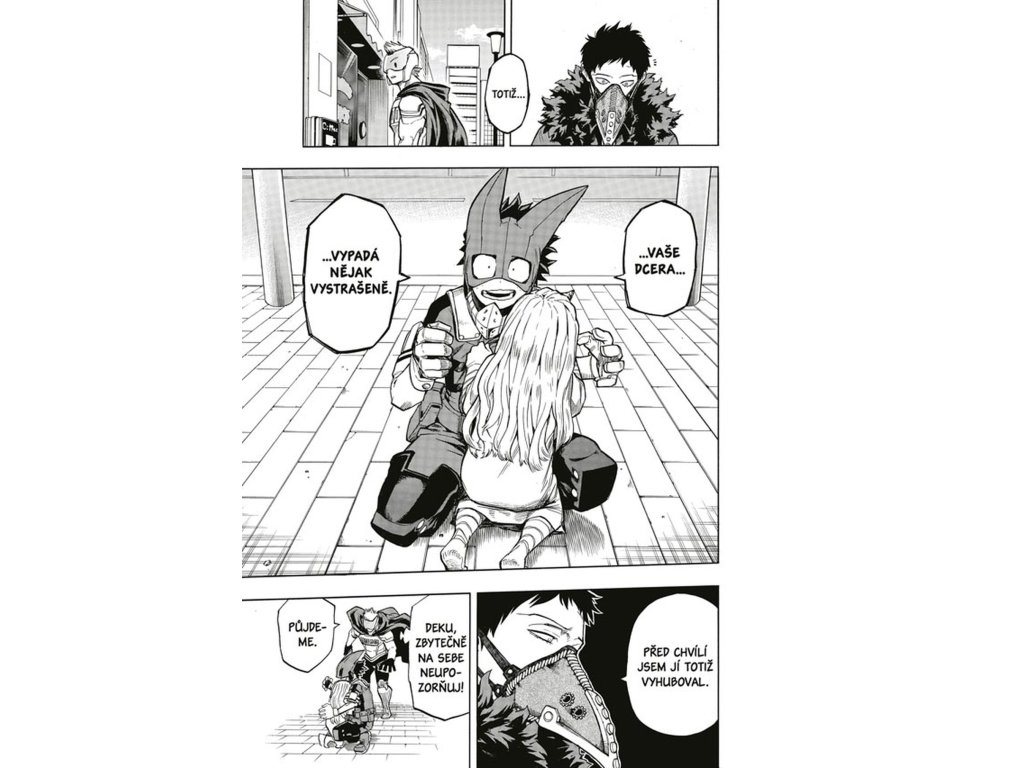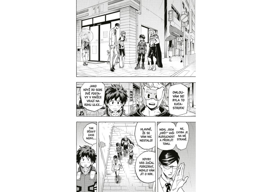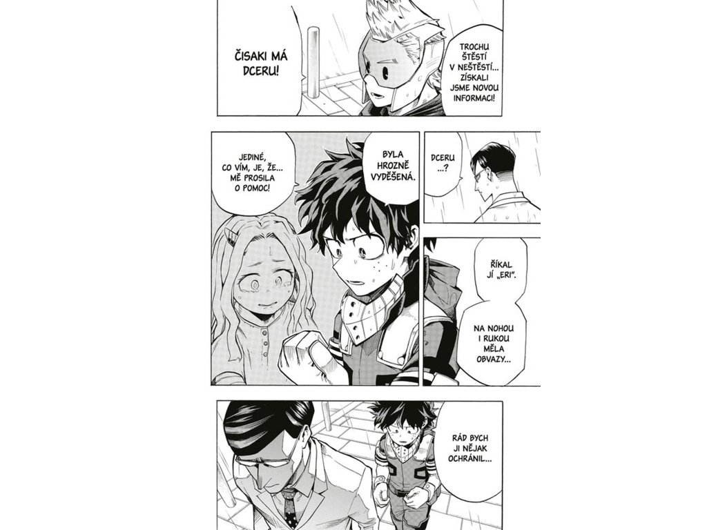 První den superhrdinských praxí je za studenty a Midorija okamžitě poznává, že realita je mnohem tvrdší než školní tréninky. Namísto teorie a bezpečného prostředí učeben se ocitá v centru dění, kde každý krok může znamenat úspěch či nebezpečí. Situace se komplikuje, když se na scéně objeví křehká dívka v nesnázích, která potřebuje ochranu. Midorija si uvědomuje, že zodpovědnost za život druhých je mnohem větší, než si kdy dokázal představit. V jeho nitru se mísí obavy, odhodlání a snaha nezklamat.