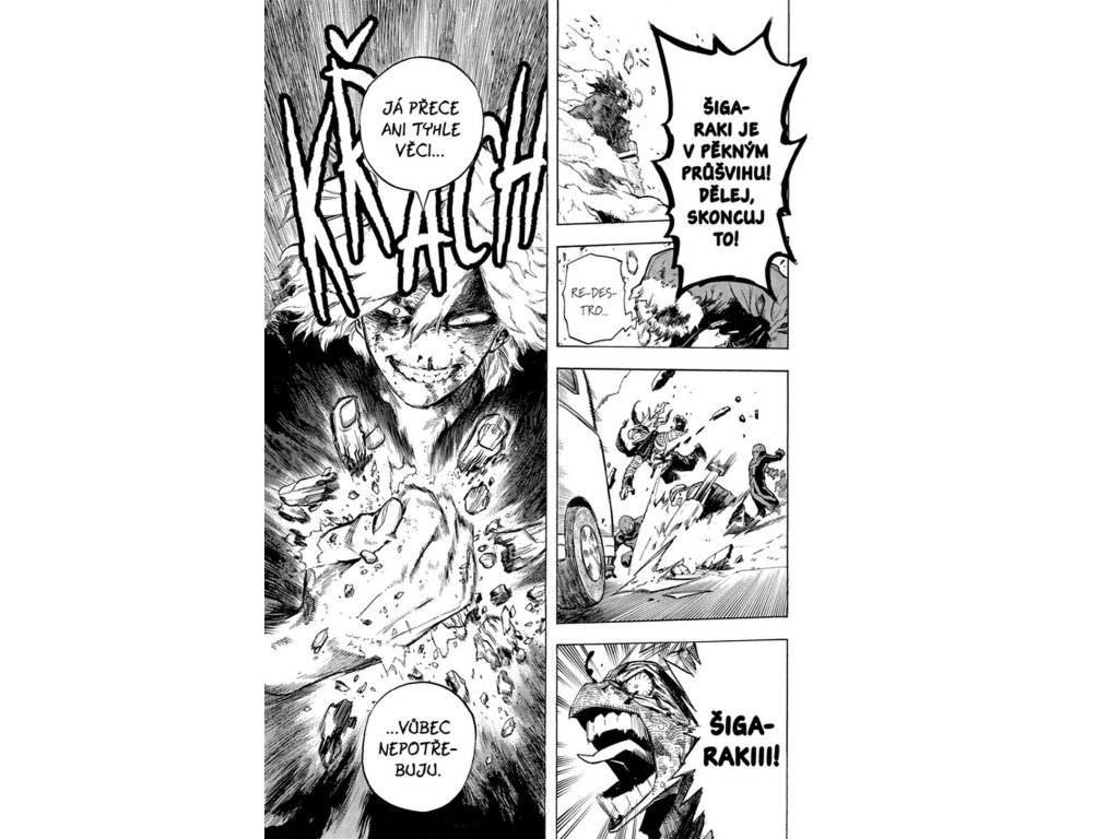 Tomura Šigaraki, hlava Ligy padouchů, se ocitá uprostřed krutého střetu s Re-Destrem, velitelem Nadlidské osvobozenecké armády. Oba muži představují různé ideály, ale jejich cíle se střetávají v bitvě, která rozhodne o budoucnosti světa padouchů. Re-Destro věří v revoluci a v systém, zatímco Šigaraki zosobňuje čirý chaos a touhu po zkáze. Tento střet není jen fyzickým bojem, ale i symbolickým konfliktem dvou naprosto odlišných vizí. Bojiště se mění v trosky a každý úder ukazuje sílu i odhodlání obou stran. Je to okamžik, který může změnit rovnováhu sil ve světě hrdinů i zločinců.