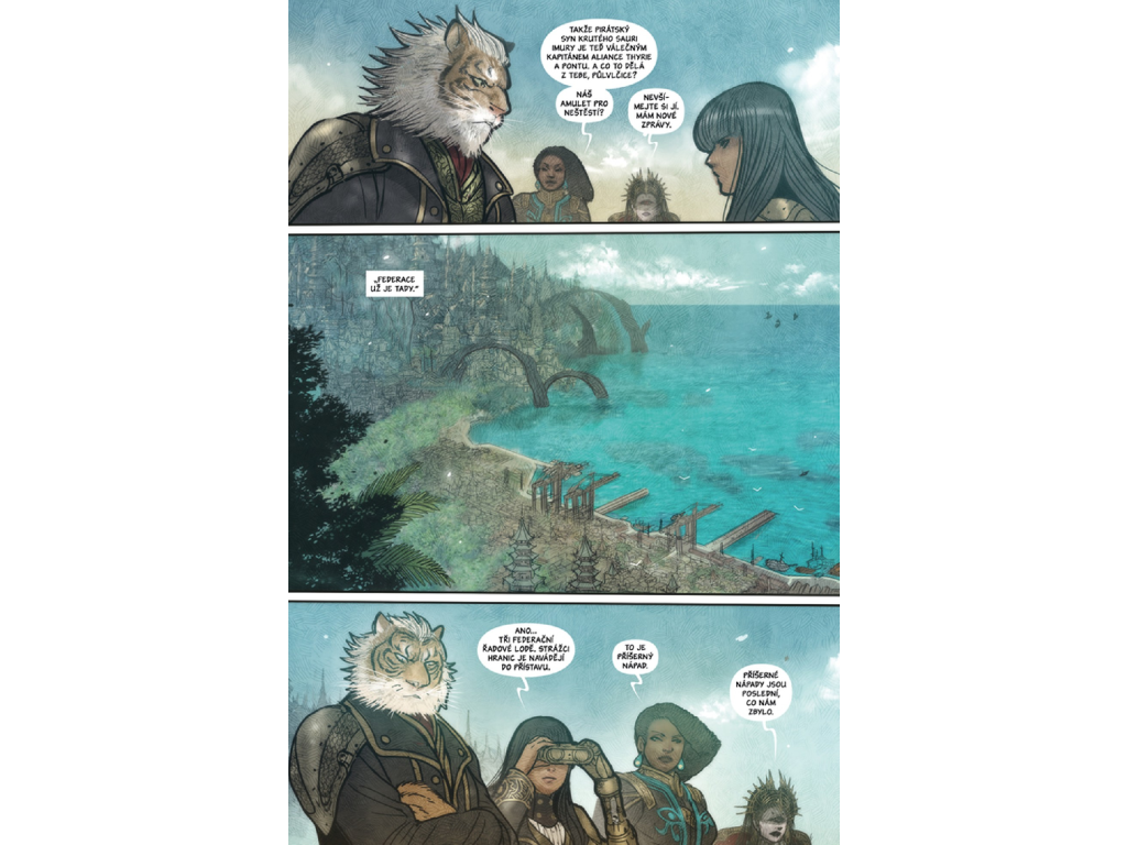 Pátý svazek je ideální pro fanoušky moderní fantasy s hlubokým světem a silnými morálními tématy. Pokud tě baví komiksy plné emocí, bitev, politiky a nádherné kresby, tady si přijdeš na své. Skvěle osloví čtenáře, kteří hledají sérii, jež se nebojí těžkých rozhodnutí a velkých událostí. Nabízí intenzivní tempo, výrazný vývoj postav a zásadní momenty pro další směřování celé ságy. Díky jedinečné atmosféře a komplexnímu světu jde o titul, který patří mezi špičku současné fantasy tvorby. Jestli chceš pokračovat v jedné z nejvýraznějších komiksových sérií současnosti, tenhle svazek by neměl chybět ve tvé sbírce.