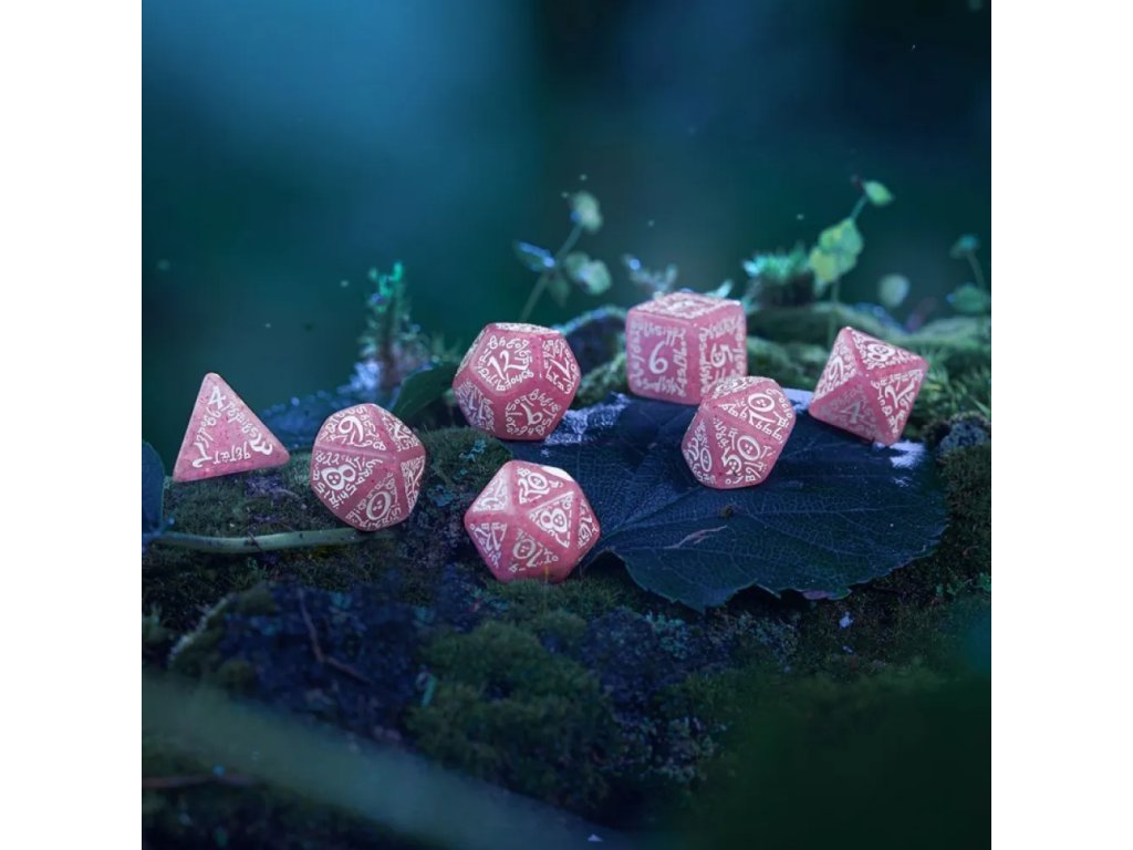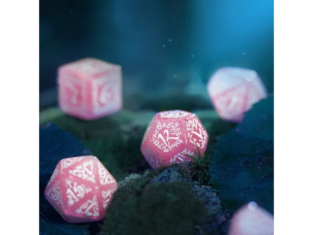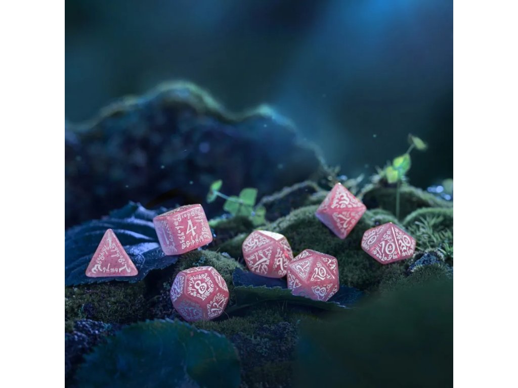 Každá kostka je detailně zdobená gravírovanými elfími runami, které působí elegantně a čitelně zároveň. Gravírování je jemné, ale dostatečně výrazné, aby bylo snadné odečítat výsledky hodů. Kostky jsou vyrobeny s důrazem na kvalitu a odolnost, takže zvládnou i pravidelné hraní. Povrch je příjemný na dotek a kostky se dobře kutálejí po stole. Elfí motiv dodává sadě jedinečný charakter a sběratelskou hodnotu. Tyto kostky nejsou jen herní pomůckou, ale i krásným tematickým doplňkem pro každého fanouška elfů. Ať už hraješ DnD, Pathfinder nebo jiný fantasy systém, budou ti skvěle sloužit.