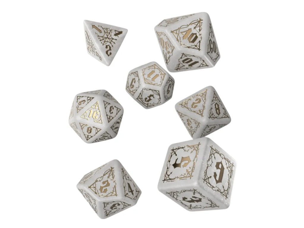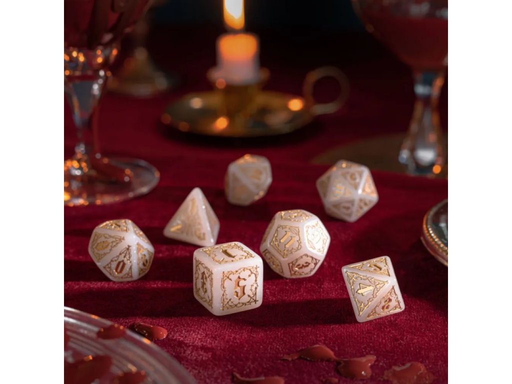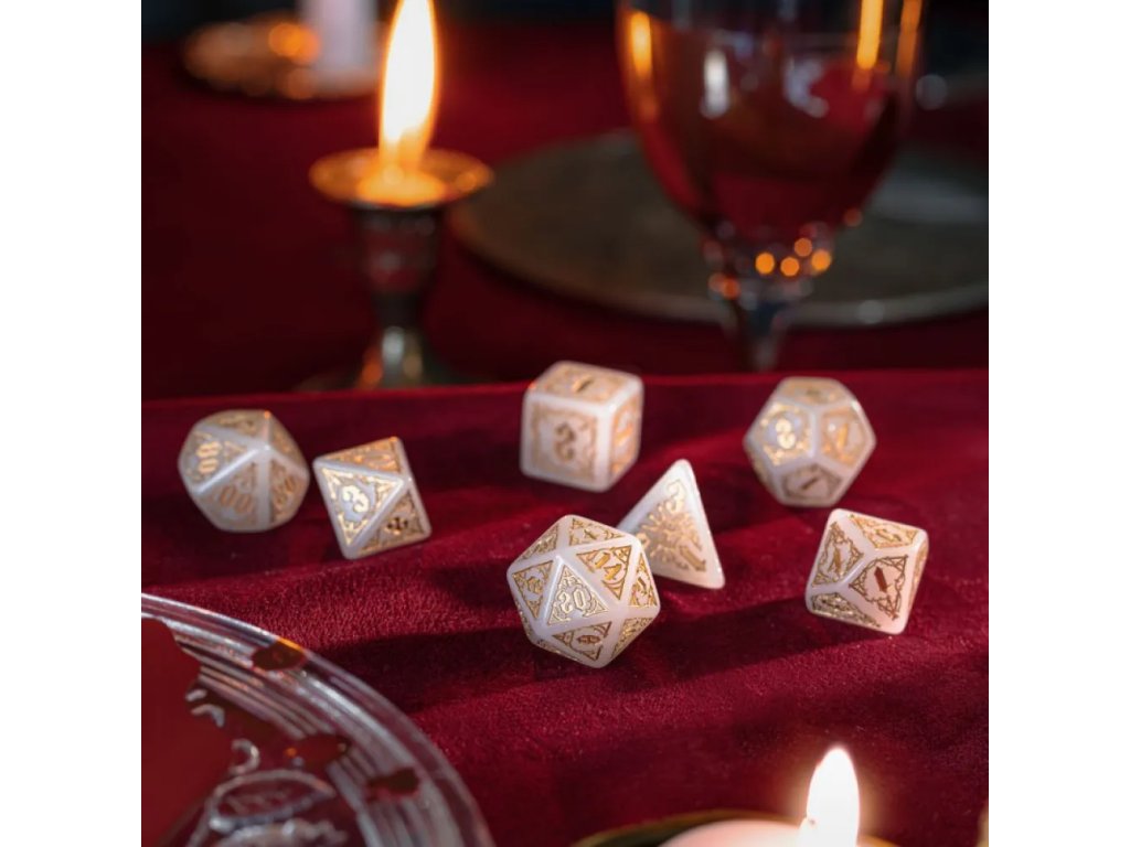 Sada obsahuje kompletní výbavu sedmi mnohostěnných kostek: k4, k6, k8, k10, k12, k20 a k%. Díky tomu máš vždy po ruce správný nástroj pro boj, testy dovedností i osudové momenty hry. Kostky se hodí pro Dungeons & Dragons, Pathfinder RPG i jakýkoliv jiný fantasy systém. Jsou ideální pro temné kampaně, upírské příběhy i mystické scénáře plné stínů a tajemství. Sada je skvělá jak pro hráče, tak pro pány jeskyně, kteří chtějí dodat svým sezením mrazivou atmosféru. Hodí se také jako stylový dárek pro fanoušky gotiky, upírů a temného fantasy. Pokud hledáš kostky, které spojují eleganci, atmosféru a funkčnost, tahle sada je přesně pro tebe — ano, i pro tebe, Edwarde Cullene.