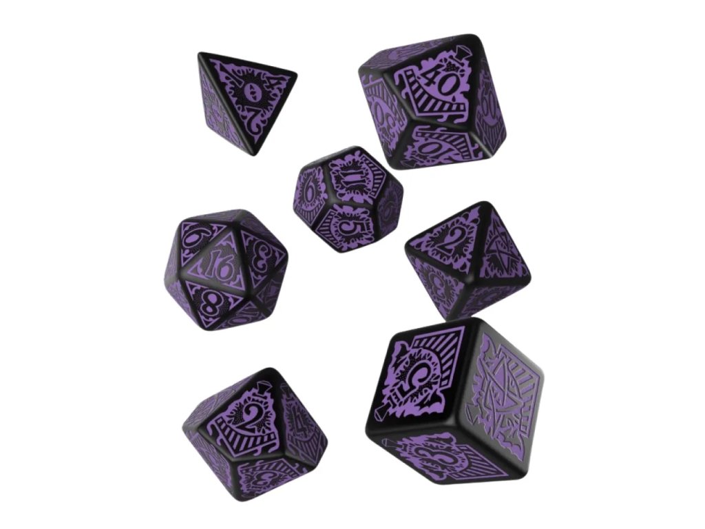 Call of Cthulhu (Volání Cthulhu) je ikonické hororové RPG, které staví na atmosféře kosmického děsu inspirované dílem H. P. Lovecrafta a jeho následovníků. Svět hry je plný prastarých entit, zakázaných znalostí a nevyzpytatelných sil, které mohou zlomit i ty nejpevnější mysli. Tato sada kostek čerpá inspiraci z legendárního dobrodružství Horror on the Orient Express, které patří mezi nejnapínavější kampaně v historii systému. Temná estetika a mysteriózní ladění kostek dokonale doplňují hororovou atmosféru hry. Černo-fialová barevná kombinace evokuje noc, mlhu a cosi prastarého číhajícího ve stínech. Každý hod s těmito kostkami působí jako další krok blíže k neznámu. Pokud hraješ Call of Cthulhu, tahle sada ti pomůže ještě víc se ponořit do děsu.