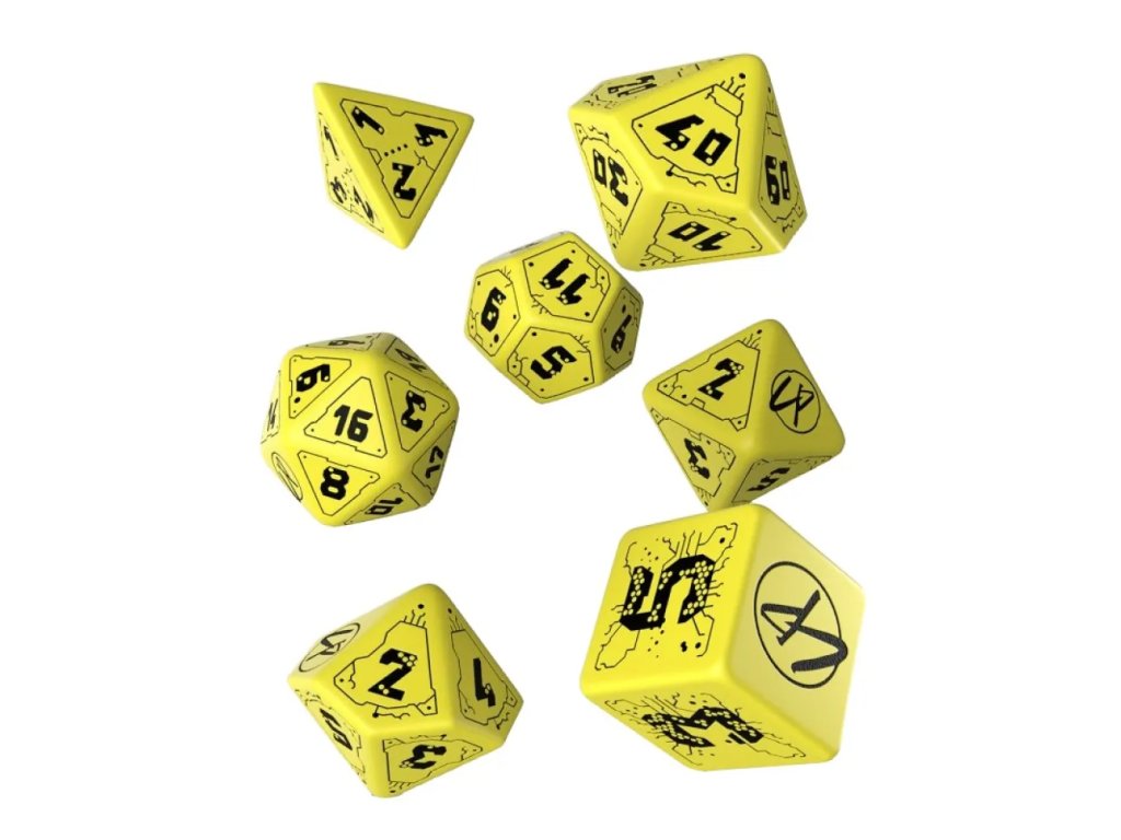 Sada obsahuje všech sedm základních mnohostěnných kostek potřebných pro většinu RPG systémů, zejména Cyberpunk Red. Najdete zde 1× k4, 1× k6, 1× k8, 1× k10, 1× k12, 1× k20 a 1× k% (procentovou) kostku. Díky tomu máte vždy po ruce správný nástroj pro boj, dovednosti, testy i kritické momenty hry. Kostky jsou navrženy tak, aby byly odolné a vhodné pro pravidelné hraní. Skvěle se hodí jak pro začínající hráče, tak pro zkušené veterány nočního města. Tato sada je ideální volbou, pokud chcete stylový a funkční doplněk k vašemu cyberpunkovému stolu.