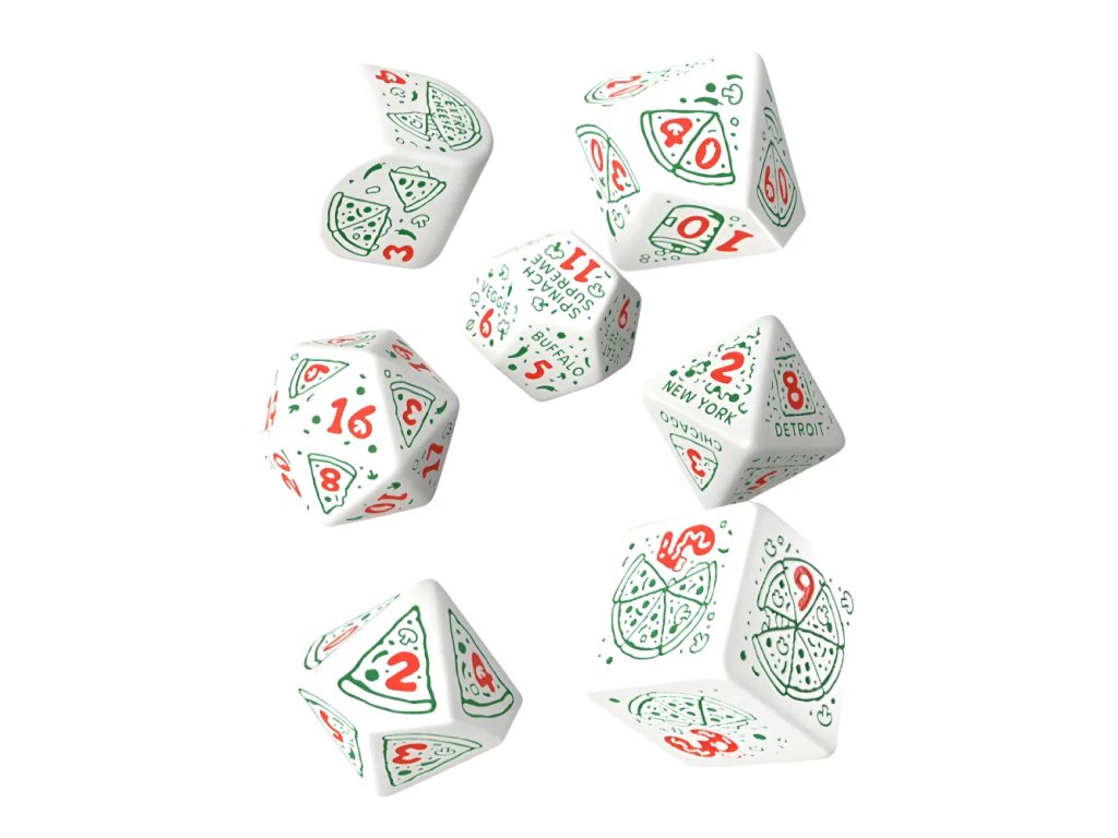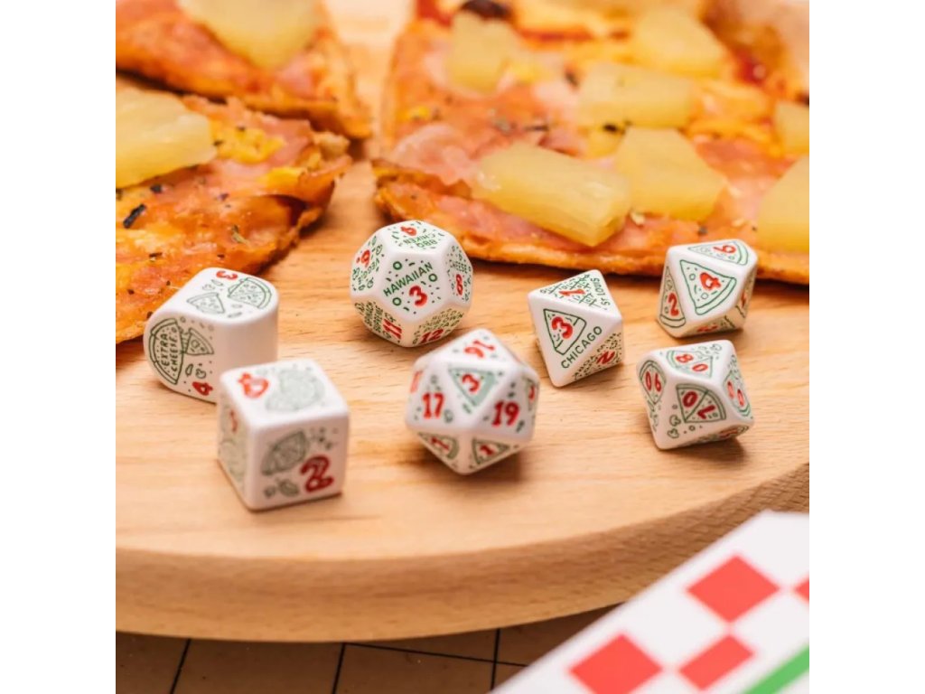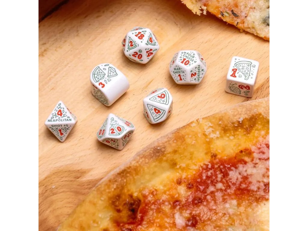 Vzdej hold pizze, nejoblíbenějšímu občerstvení při hraní RPG, se sadou Pizza – Pepperoni. Tyto kostky jsou inspirované klasickou pikantní variantou pizzy a přinášejí na herní stůl hravou energii i pořádnou dávku stylu. Bílé kostky se zelenými symboly a výraznými červenými čísly připomínají svěží bazalku a šťavnaté pepperoni. Každý hod působí jako další kousek z chutného plátu, který si chceš vzít do ruky. Sada je ideální pro gurmány, milovníky pizzy i hráče, kteří mají rádi originální a vtipné herní doplňky. Nejde jen o kostky – je to tematický zážitek, který rozesměje celou družinu.