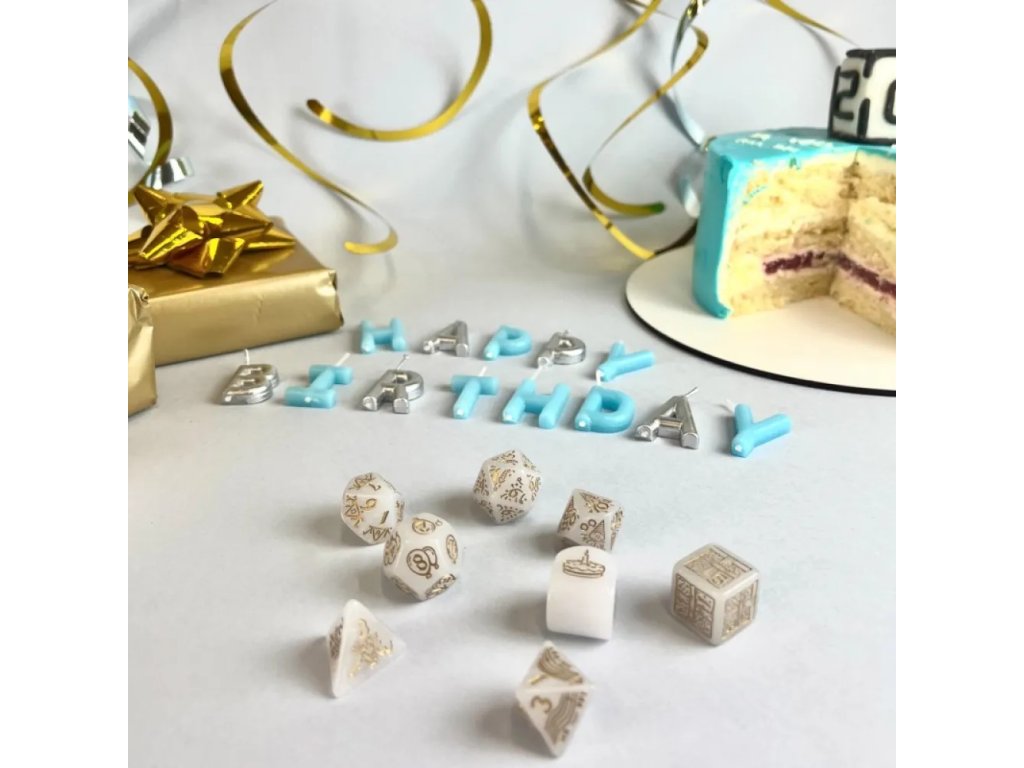 Tyto kostky jsou skvělým narozeninovým dárkem – ať už pro tvého Dungeon Mastera, spoluhráče nebo kohokoliv, kdo miluje RPG. Díky univerzálnímu bílému podkladu a elegantním zlatým detailům se hodí ke každému hernímu stylu i tématu. Design je zároveň dostatečně slavnostní, aby vynikl jako speciální edice, ale stále plně funkční pro běžné hraní. Povrch kostek je příjemný na dotek a zajišťuje plynulé kutálení po stole. Zlaté rytiny jsou dobře čitelné, takže ani při rychlé hře neztratíš přehled o výsledcích. Sada působí uceleně, prémiově a sběratelsky, což ocení každý fanoušek Q-Workshop. Ať už slavíš výročí, narozeniny nebo jen chceš něco výjimečného, tyto kostky jsou trefou do černého.