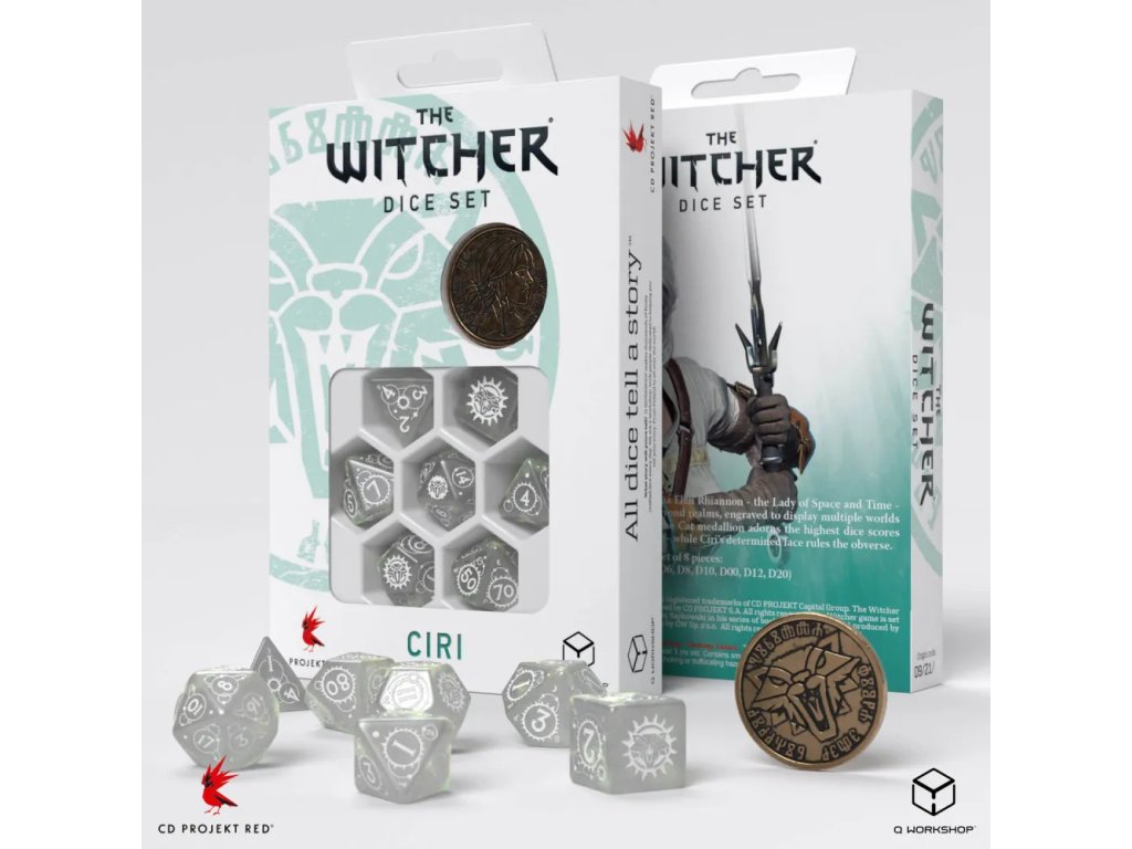 Sada obsahuje všech sedm základních mnohostěnných kostek potřebných pro většinu RPG systémů. Najdete zde D4, D6, D8, D10, D12, D20 i procentovou kostku. Kostky jsou dobře čitelné, příjemné do ruky a vhodné pro pravidelné hraní. Velkým bonusem je sběratelská mince s portrétem Ciri o průměru 3 cm. Ta dělá ze sady nejen herní doplněk, ale i sběratelský předmět. Celé balení působí hodnotně a tematicky uceleně. Pokud hledáte kombinaci funkčnosti, stylu a sběratelské hodnoty, tato sada je skvělá volba.