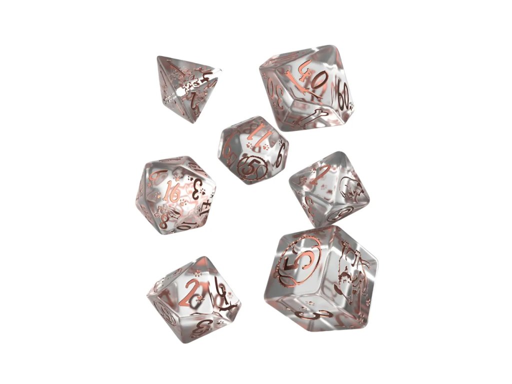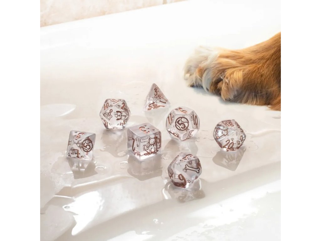 Sada 7 mnohostěnných psích kostek je věnována našim věrným, chlupatým kamarádům a jejich hravé povaze. Každá kostka nese jedinečné symboly inspirované světem psů – najdeš zde tlapky, kosti, míčky a další roztomilé motivy. Design je hravý, přátelský a zároveň stylový, takže se skvěle hodí na každý herní stůl. Kostky jsou vhodné nejen pro hry na hrdiny, ale i pro různé deskové hry, kde využiješ více typů hodů. Ať už hraješ epické RPG, rodinnou deskovku nebo jen házíš pro zábavu, tahle sada ti zvedne náladu. Každý hod s nimi působí jako malé připomenutí radosti, kterou nám psi přinášejí. Pokud miluješ psy i hraní, tahle sada je přesně pro tebe.