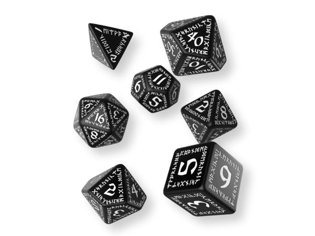 Sada obsahuje všech sedm základních RPG kostek: čtyř, šesti, osmi, deseti, dvanácti, dvaceti stěnnou a procentovou kostku. Díky tomu máš k dispozici vše potřebné pro většinu RPG systémů. Kostky jsou dostupné v několika barevných kombinacích, takže si můžeš vybrat variantu podle stylu nebo postavy. Barvy jsou vždy uváděny v pořadí barva podkladu a barva run, což usnadňuje orientaci při výběru. Každá kombinace působí jinak a umožňuje přizpůsobit sadu vlastnímu vkusu. Kostky jsou vhodné pro DnD, fantasy RPG i další herní systémy. Jde o praktickou a zároveň stylovou součást každé herní výbavy.