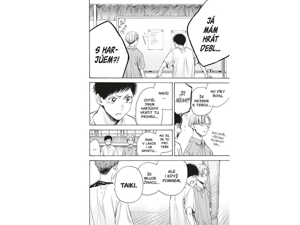 Taiki dostává novou výzvu, když je přiřazen do čtyřhry s Harjúem, a jeho cesta za úspěchem nabírá na intenzitě. Čeká ho tvrdý trénink, který prověří jeho odhodlání i schopnost spolupracovat. Atmosféra příběhu je plná energie, soutěživosti a rostoucího napětí, které se neomezuje jen na sportovní hřiště. Taiki si uvědomuje, že nejde jen o postup do dalšího kola, ale i o to, co cítí k Činacu. Každý zápas i tréninkový den ho posouvá blíž k cíli, ale zároveň ho vystavuje novým pochybnostem. Tohle je moment, kdy se láme nejen jeho sportovní cesta, ale i osobní život.