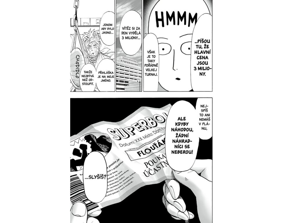 Zatímco svět hrdinů řeší Garóa, Saitamu zaujme úplně jiná věc. Nadchne ho myšlenka vyzkoušet si bojová umění, a proto se rozhodne tajně zúčastnit turnaje. Aby zůstal nepoznán, vystupuje pod jiným jménem a snaží se zapadnout mezi ostatní bojovníky. Turnaj slibuje řadu zajímavých soubojů a setkání s novými protivníky. Pro Saitamu je to příležitost zjistit, zda může konečně zažít opravdovou výzvu. Jenže i zde může jeho neuvěřitelná síla způsobit nečekané komplikace.