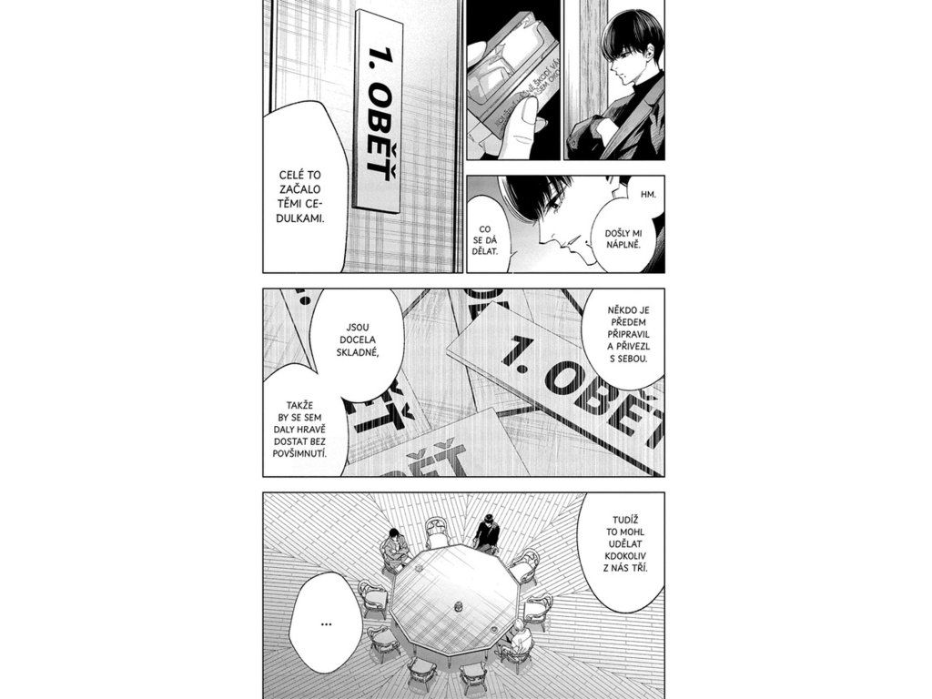 Na ostrově Cuno se tyčí tajemné desetiúhelníkové sídlo Dekagon, místo plné nevysvětlených událostí a temných vzpomínek. Architekt Seidži Nakamura zde před půl rokem tragicky zemřel a nyní se historie opakuje. Členové Detektivkového klubu Univerzity K postupně umírají a poslední přeživší se zoufale snaží odhalit pravdu. Atmosféra houstne s každou další kapitolou a napětí dosahuje vrcholu. Každý detail může být klíčem k přežití i k rozluštění celé záhady. Příběh směřuje k nevyhnutelnému a dramatickému finále.