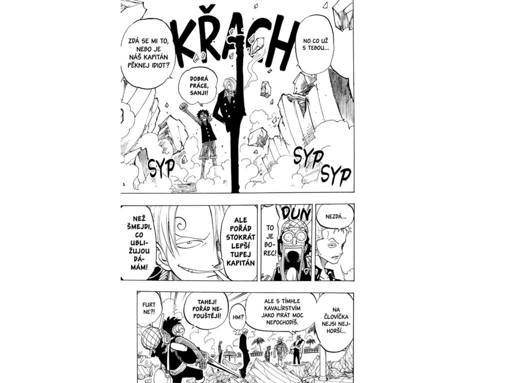 Luffyho pád spustí vlnu odhodlání mezi jeho přáteli. Zbytek posádky – Zoro, Sanji i Usopp – neváhá ani vteřinu a vrhá se do boje proti Arlongovým rybo-lidským bojovníkům. Vědí, že tentokrát nebojují jen za svého kapitána, ale i za Nami a všechny, kdo trpěli pod Arlongovou nadvládou. Bitva je nelítostná, plná emocí, a ukazuje, jak silné pouto mezi členy posádky skutečně je. Vzájemná důvěra a ochota obětovat vše pro druhé se stává jejich největší zbraní. Společně jsou víc než jen piráti – jsou rodina.