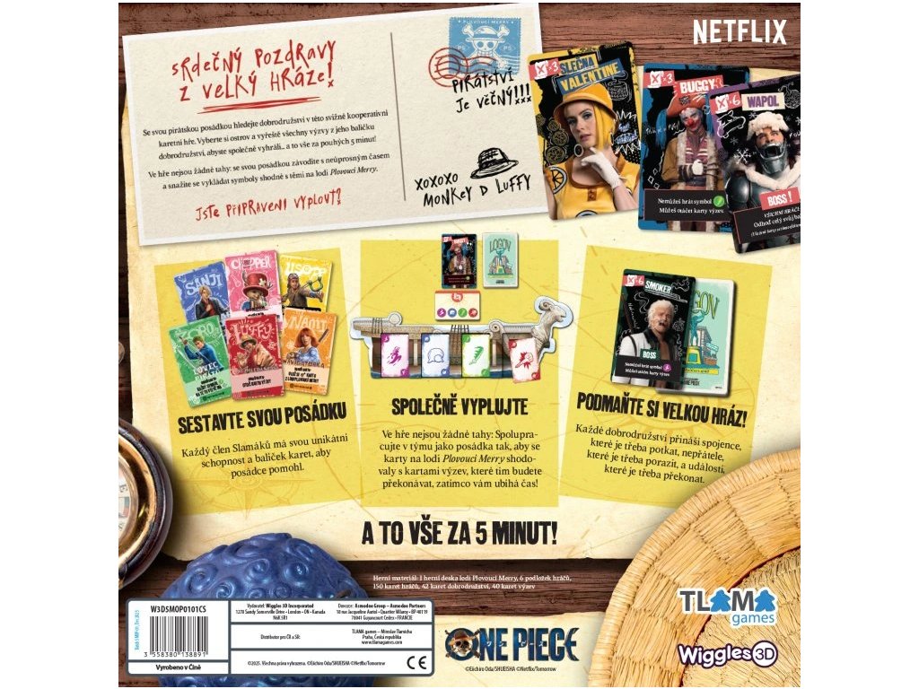 5minutovka: One Piece je ideální pro hráče, kteří hledají rychlou, kooperativní a zábavnou hru. Je vhodná pro začátečníky i zkušené hráče díky jednoduchým základním pravidlům a volitelným obtížnostem. Hra podporuje týmovou spolupráci, komunikaci a rychlé rozhodování. Skvěle se hodí na krátké herní seance, večírky i rodinné hraní. Díky inspiraci seriálovou adaptací One Piece osloví i fanoušky této značky. Pokud chceš zažít intenzivní dobrodružství během několika minut, tato hra je přesně pro tebe.