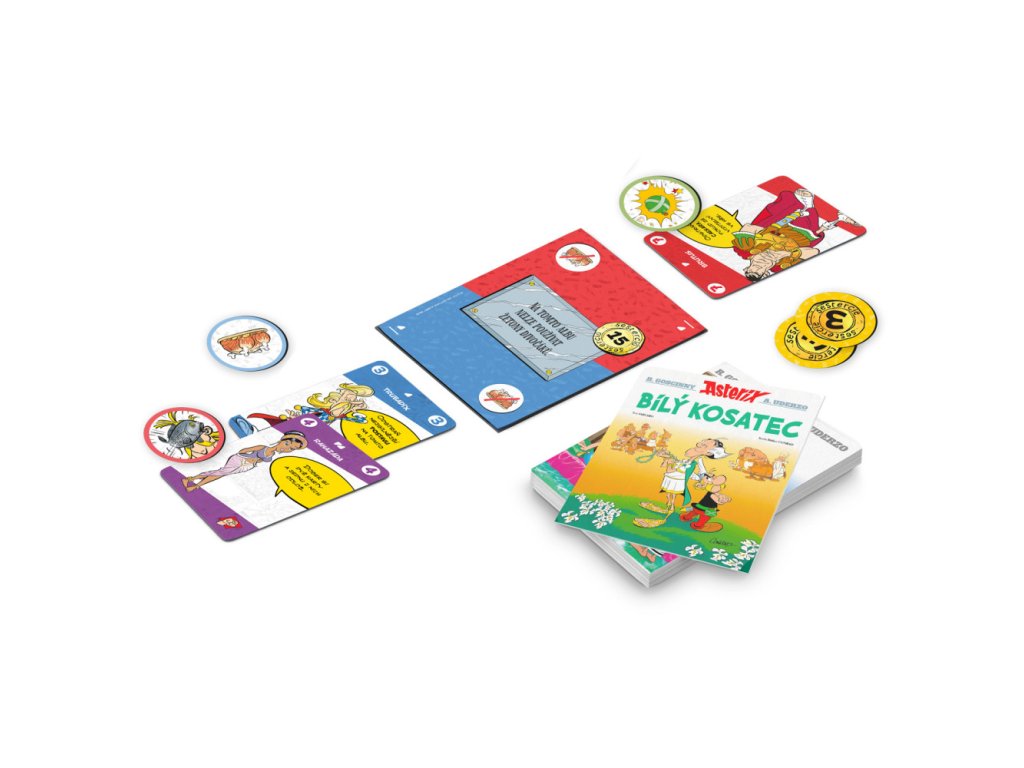 Hra je plná interakce, blafování i přátelského škádlení, které dělá z každé partie nezapomenutelnou zkušenost. Vaším cílem je vyhrát co nejvíce bitev a získat pořádnou kopu sesterciů – protože i Galové vědí, že vítězství chutná lépe, když se leskne zlaťákem! Nechybí ani ikonické prvky z komiksů: posvátný lektvar vám dodá sílu, divočák doplní energii a občas... přiletí ryba. To všechno s lehkostí, kterou fanoušci Asterixe milují už desítky let. Díky jednoduchým pravidlům se do hry mohou pustit děti i dospělí, a přesto nabízí dostatek prostoru pro taktiku a šikovné kombinace.