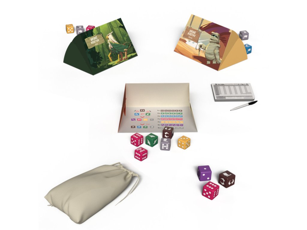 Každá kostka ve hře má svoji barvu a zároveň i vlastní sílu, což vytváří zajímavé kombinace a taktické možnosti. Některé kostky jsou silnější a na první pohled působí jako jasná výhoda, jenže i ty mají svoje slabiny. Právě díky tomu není žádná volba úplně bezpečná a situace se může otočit během jediného hodu. Hráči musí přemýšlet, kdy riskovat a kdy naopak hrát opatrně, aby si nepokazili sázku. Ve správnou chvíli dokáže i slabší kostka překvapit a změnit průběh kola. Hra tak krásně balancuje mezi kontrolou a chaosem, což je na ní extrémně zábavné. Každý štych je malý souboj nervů, protože nikdy nevíš, co komu padne. A přesně tyhle momenty dělají z Bájných kostek hru plnou emocí a zvratů.