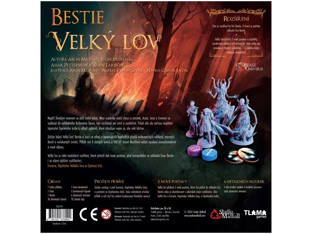 V balení najdeš 6 detailních plastových miniatur, které oživí postavy i klíčové momenty příběhu. Rozšíření je vhodné pro hráče, kteří chtějí prohloubit herní zážitek a ponořit se do silného narativu. Ocení jej fanoušci příběhových her, RPG prvků i sběratelé miniatur. Díky modulárnímu systému můžeš obsah využít samostatně nebo v kombinaci s dalšími rozšířeními. Nejlépe se uplatní při opakovaném hraní, kdy budeš objevovat nové větve příběhu a alternativní konce. Velký lov přináší komplexní, napínavý a znovuhratelný obsah pro každého fanouška hry Bestie.