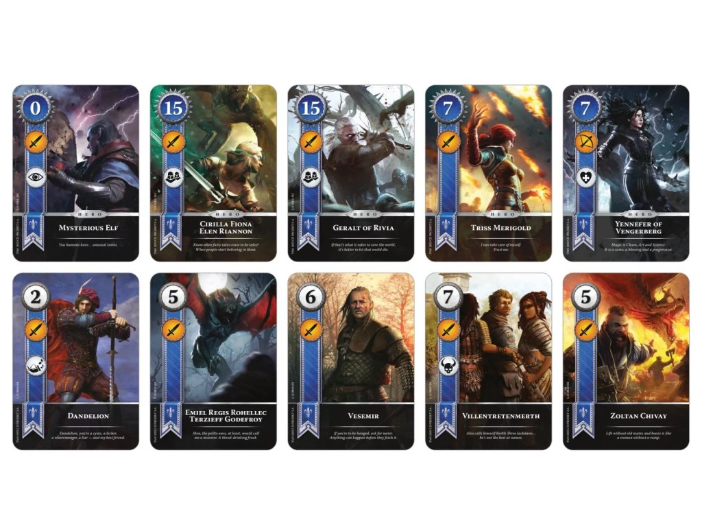 Součástí balíčku je deset vybraných karet hrdinů, kteří patří mezi ikonické postavy světa Zaklínače. Jejich foilová verze působí ještě výrazněji a dodává každé bitvě jedinečnou atmosféru. Tyto karty nejsou pouze sběratelskou raritou – jsou plně hratelné a můžete je bez problému zařadit do svých balíčků. Foilová úprava přináší nejen krásný vizuální efekt, ale i odolnější povrch, který lépe snáší časté používání. Hráči si tak mohou užívat nejen funkčnost, ale i estetický požitek z každé vyložené karty. Foilové karty jsou tak ideálním spojením praktického využití a sběratelské hodnoty.
