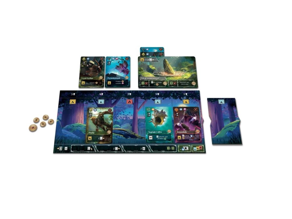 Během hry si sestavuješ vlastní družinu bytostí a vybavuješ je mocnými artefakty. Více než 100 unikátních karet nabízí obrovské množství kombinací a strategií. Klíčovým prvkem je práce s časem, který určuje, kdy se karty aktivují a jak silné budou jejich efekty. Pomocí posuvných dílků na své desce plánuješ tempo hry a načasování jednotlivých akcí. Správné řízení těchto mechanik rozhoduje o úspěchu nebo neúspěchu. Každé rozhodnutí má dopad na další průběh partie.
