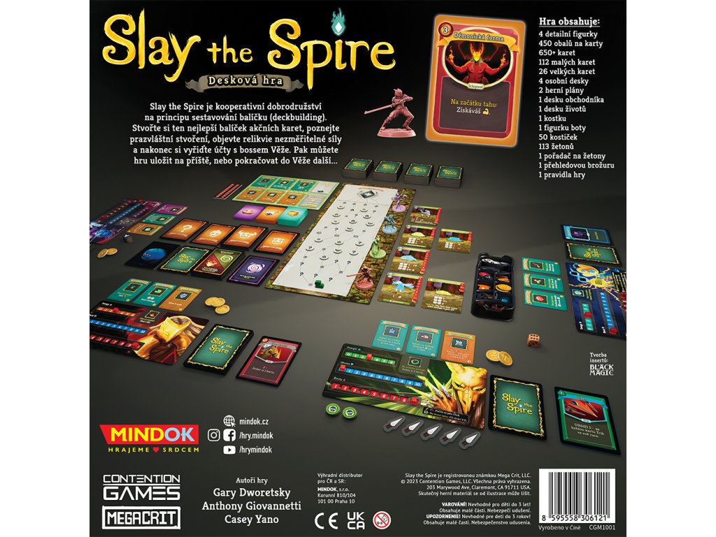 Slay the Spire: Desková hra je kooperativní deckbuilding podle legendární počítačové hry, který věrně převádí její atmosféru na váš stůl. Hráči se ujímají rolí odvážných hrdinů a společně se vydávají na nebezpečnou cestu vzhůru věží. Cílem je porážet bizarní nepřátele, získávat cenné odměny a neustále posilovat své balíčky karet. Každé rozhodnutí vás přibližuje k závěrečnému střetu s mocným bossem, jehož poražení rozhodne o vašem vítězství. Hra je dynamická, strategická a přitom přístupná i pro hráče, kteří nemají zkušenost s videoherní předlohou. Pokud však znáte původní hru, okamžitě oceníte, jak věrně se podařilo přenést její kouzlo na herní stůl.