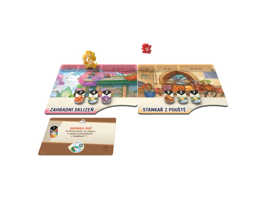 Základem hry je sběr surovin a příprava pokrmů, ale hlavní twist přichází v podobě kuchařské celebrity – tajemného kritika, jehož chutě se snažíte odhalit. Kritici mají různé preference, které se skrývají v kartách šeptand a jejich poznání může rozhodnout o vašem vítězství. Sledování indicií a správné načasování pokrmů je klíčem k úspěchu. Hráči tak musí balancovat mezi krátkodobými soutěžemi a dlouhodobým cílem uspokojit kritika. Přidejte k tomu pomocníky se speciálními schopnostmi a máte před sebou hru plnou zábavných taktických rozhodnutí. Díky velké variabilitě je každá partie jiná a přináší nové výzvy.