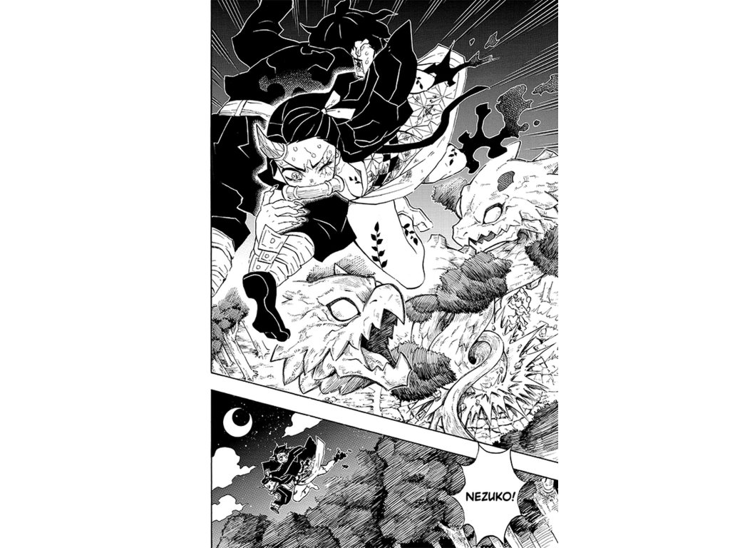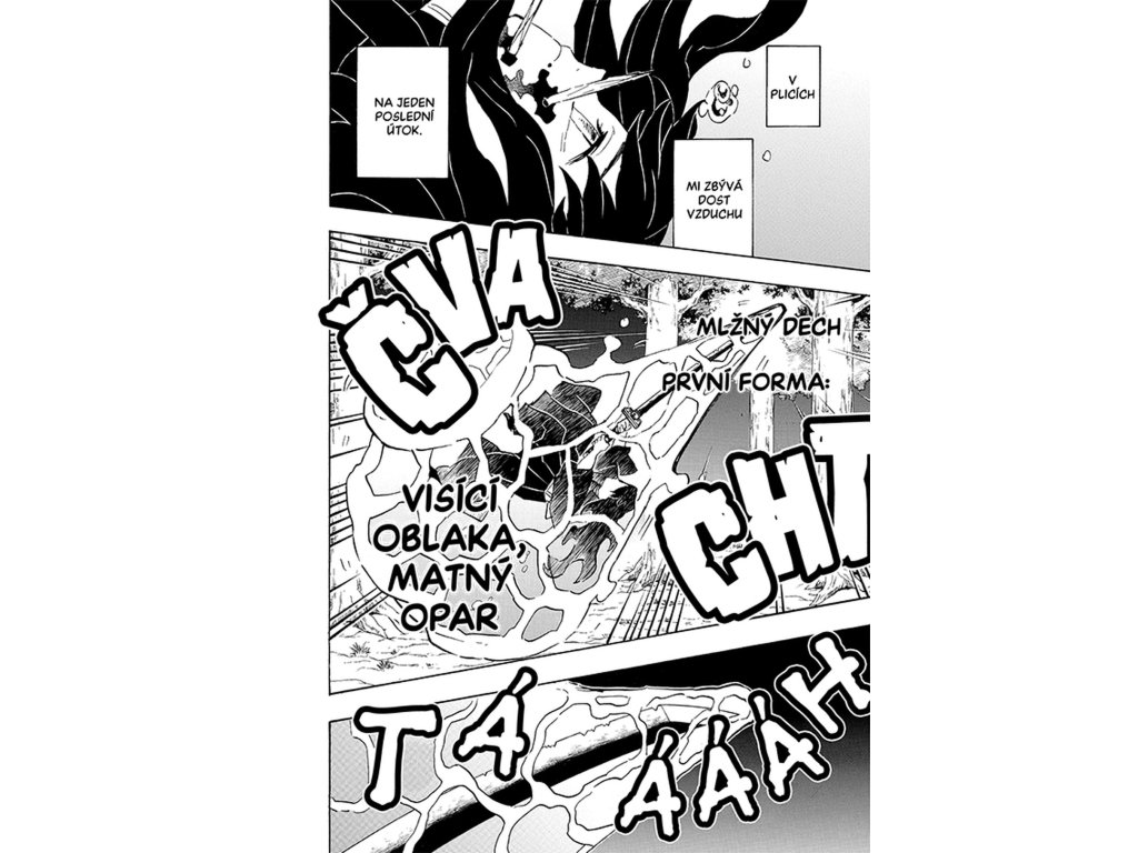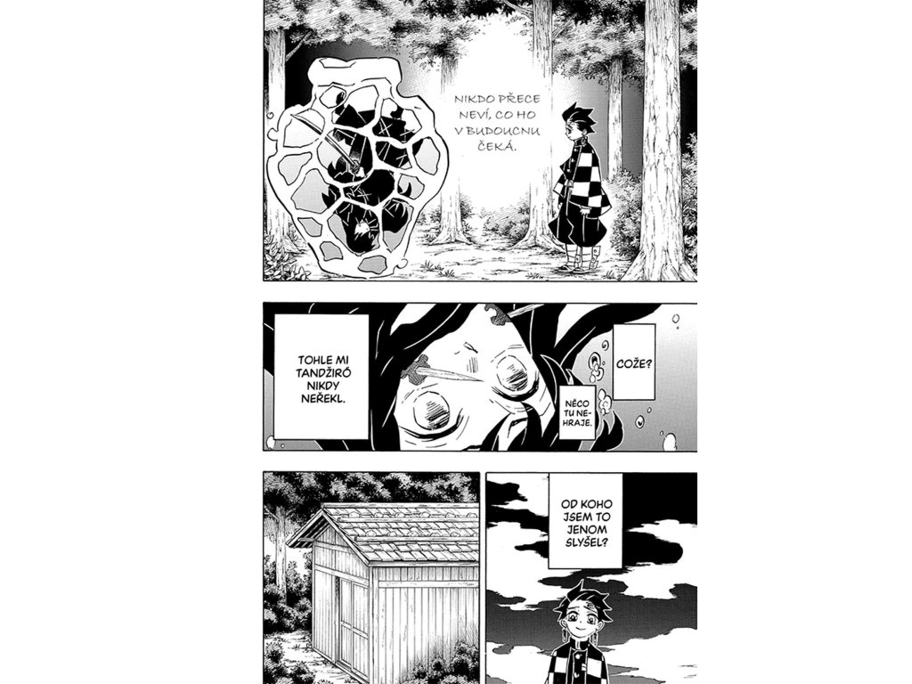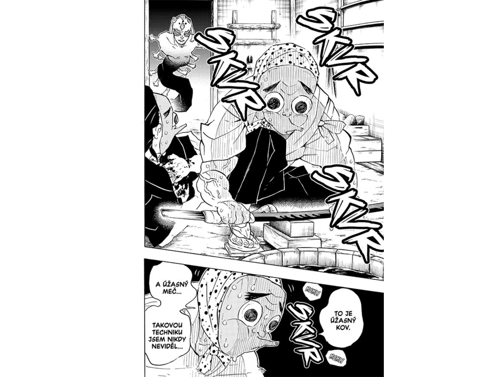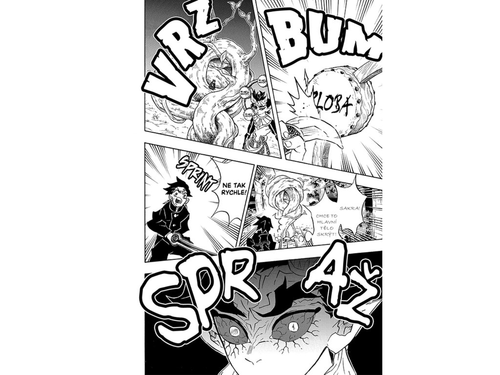 Boj v kovářské vesnici se ještě více vyhrocuje, když se klony vytvořené z emocí démona Hantengua spojují v jednu děsivou podobu. Tento nový protivník se okamžitě zaměřuje na Tandžiróa, který se ocitá v boji, jaký dosud nezažil. Každý útok je veden s brutální silou a podtržen mocí démonových emocí, což činí souboj ještě nebezpečnějším. Tandžiró se snaží vzdorovat, ale tlak je obrovský a situace se zdá být bezvýchodná. Tohle není jen boj o přežití – je to střet s psychologickým nátlakem a mocí, která útočí i na mysl. Čtenáře čekají okamžiky napětí, kdy se hrdina ocitá na hranici svých možností.