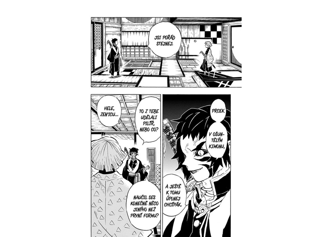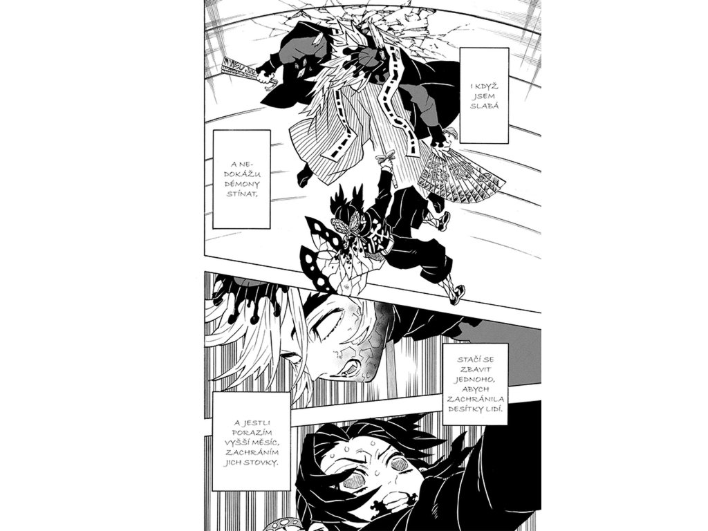 Zatímco Šinobu bojuje o život, Zen’icu se vydává za vlastním nepřítelem. Jeho cesta se protíná s démonem, proti němuž chová osobní nenávist, a jeho odhodlání je silnější než kdy dřív. Zen’icu, který byl často vnímán jako slabší článek skupiny, nyní ukazuje zcela novou tvář a dokazuje, že i on má sílu čelit těm nejsilnějším démonům. Tento díl Démon Slayer tak propojuje několik dramatických linií, které se odehrávají souběžně v rámci Nekonečného hradu. Čtenáře čeká mix napětí, akce a emocionálních okamžiků, které tvoří základ pro vyvrcholení celé ságy.